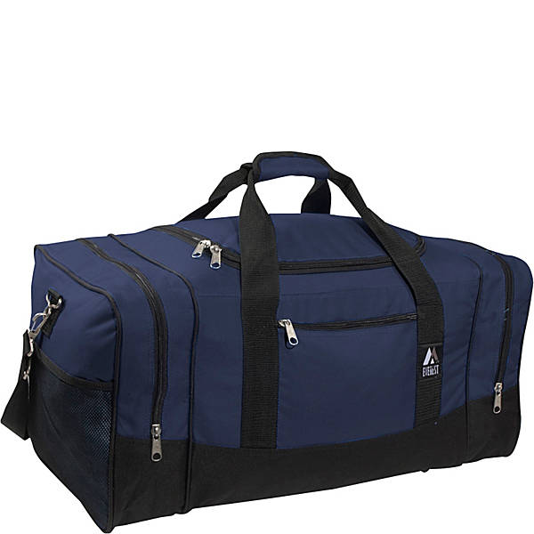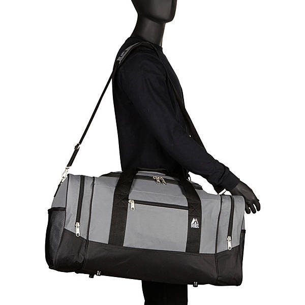 Keep your travel essentials stylishly stowed in the Everest 25″ Sporty Gear Bag. This lightweight and durable polyester duffel bag boasts a spacious main compartment with an easy-access u-shaped opening and plenty of room for your folded clothing. Zippered end pockets are perfect for storing shoes and soiled laundry; or for quick access to frequently-needed items, and a zippered front pocket keeps valuables or travel documents safe and secure. The Everest 25″ Sporty Gear Bag has a padded, adjustable shoulder strap and double top handles for carrying comfort and versatility.