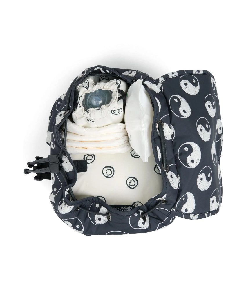 Designed for modern parents to express their sense of style with confidence, this head-turning backpack combines bold design with everyday practicality. Featuring a striking Ying Yang print by independent fashion brand Another Fox in 100% recycled polyester, this large yet lightweight design includes plenty of thoughtfully placed pockets to keep your and your baby’s essentials close at hand. Plus, with a coordinating Smiley Face print changing mat and insulated bottle holder, you can easily feed and change on the move, wherever the day takes you.