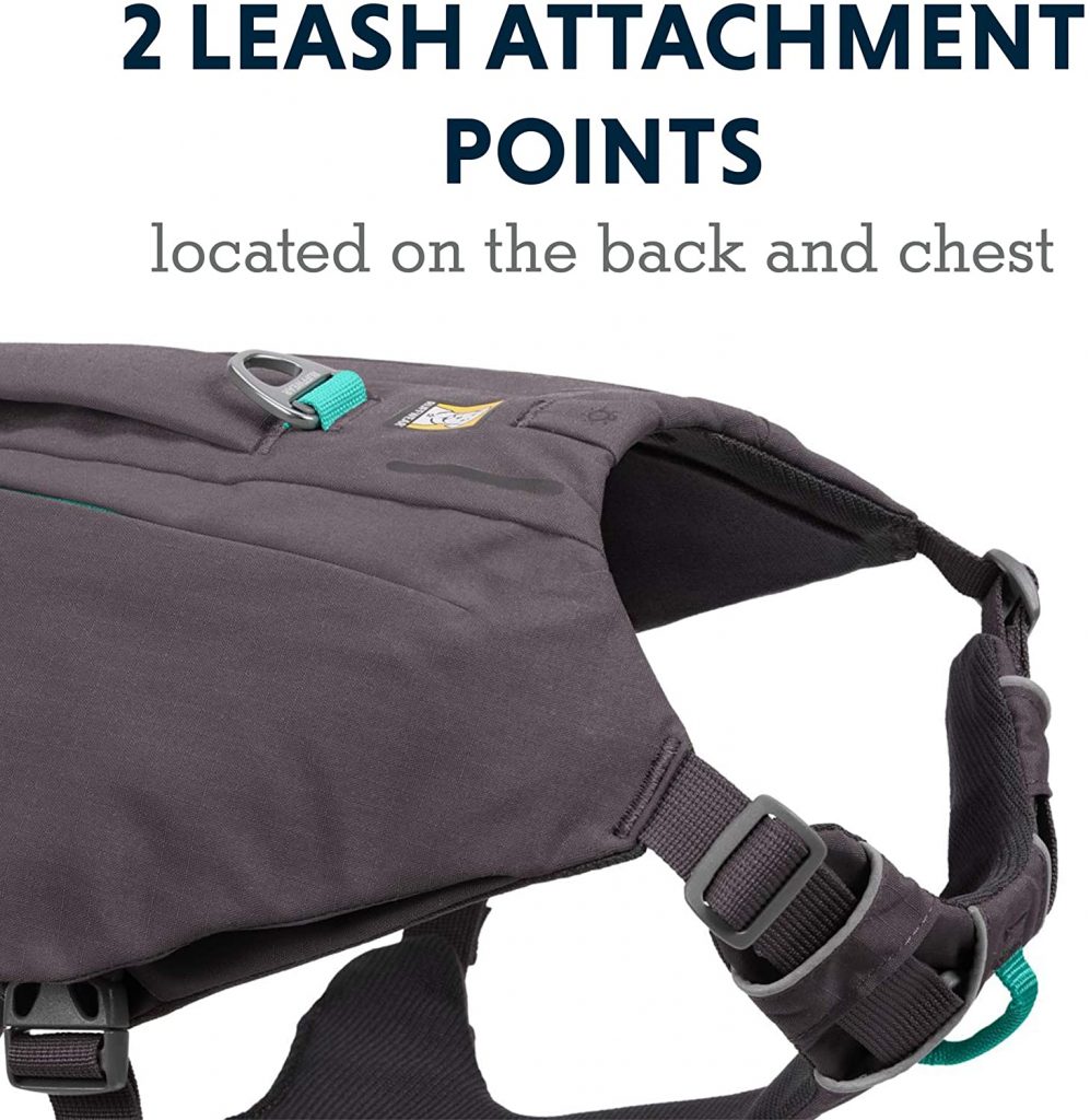 2 leash points: Attach a leash to the aluminum V-ring on the back for more relaxed adventures or to the reinforced webbing loop on the chest to help redirect dogs that pull