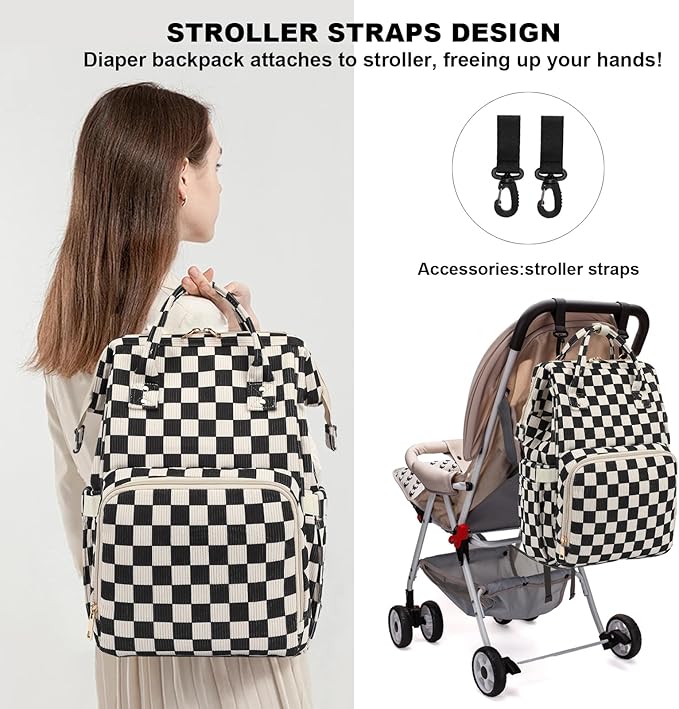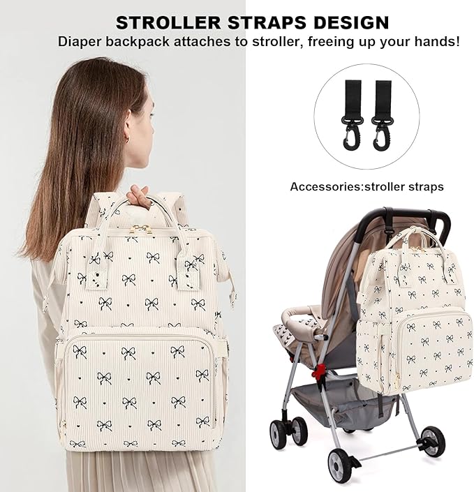 【Convenient】Baby diaper backpack includes stroller straps accessory that allows the backpack to be attached to the stroller; 3 insulated bottle pockets with aluminum foil material, provides insulation effection and can make your baby feeding bottles keep warm.