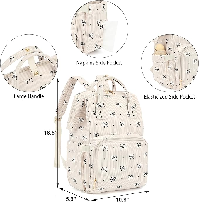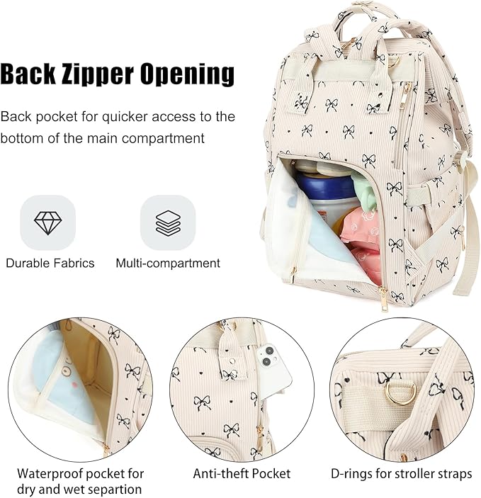 【Material】Crafted from soft, lightweight corduroy fabric with a cute pig nose pattern, this diaper backpack combines reinforced double-stitched seams with tear-resistant construction to ensure lasting durability.