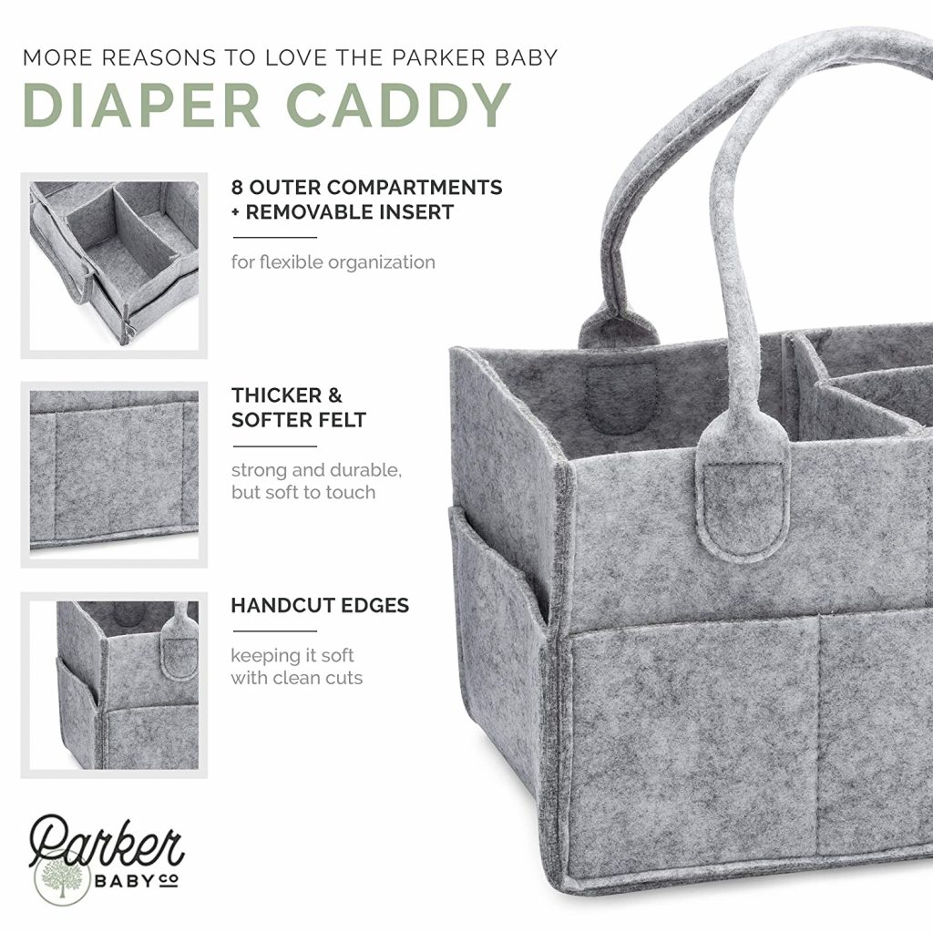 REMOVABLE ORGANIZER INSERT – acbags.com Remove the diaper organizer insert to use as a toy storage bin, baby hamper or nursery basket for additional nursery storage. Our lightweight, portable diaper caddy is 16 x 10 x 7″ (Large Size) and made of soft felt and features sturdy outer pockets for additional baby storage.