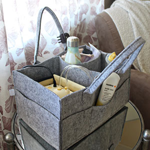 DESIGNED TO COMPLIMENT YOUR NURSERY DECOR – Our diaper caddy basket is designed with neutral grey colors to look good in any room. It looks good on your changing table, on top of a dresser or next to the diaper pail and is an essential item for your diaper changing station. Easily move the tote around using the long handle.
