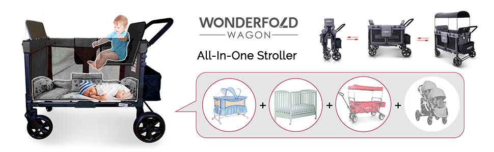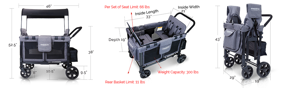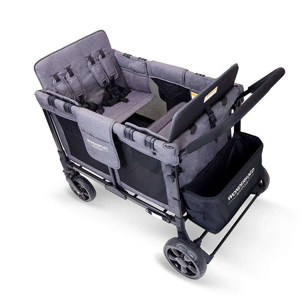 acbags.comBaby Multi-Function Four Passenger Wagon Folding Quad Stroller with Removable Reversible Canopy & Seats up to 4 Toddlers, Gray