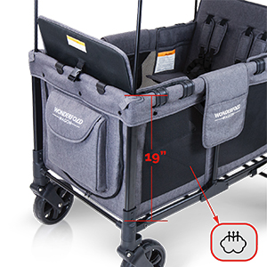 19″ depth carriage allows more space for storage. The deep carriage can also act as a footwell for children with seats installed.