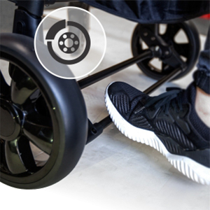 One-step easy foot brake and 9.5″ rear wheels with bearings installed for easy maneuvering.