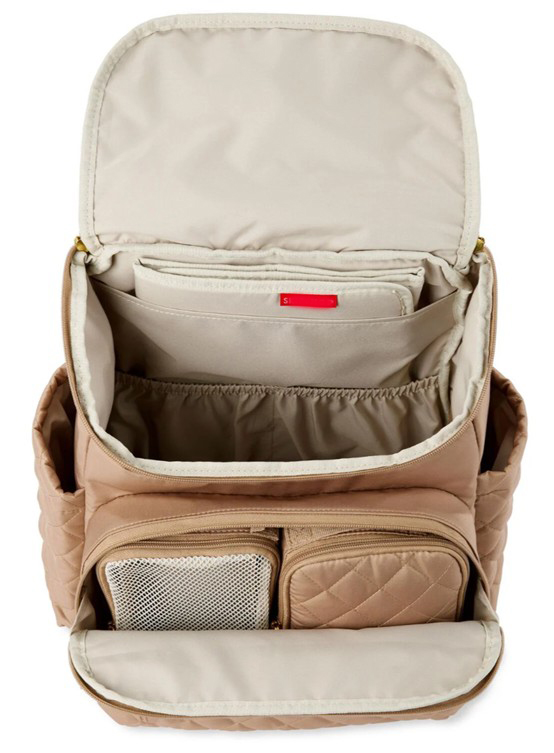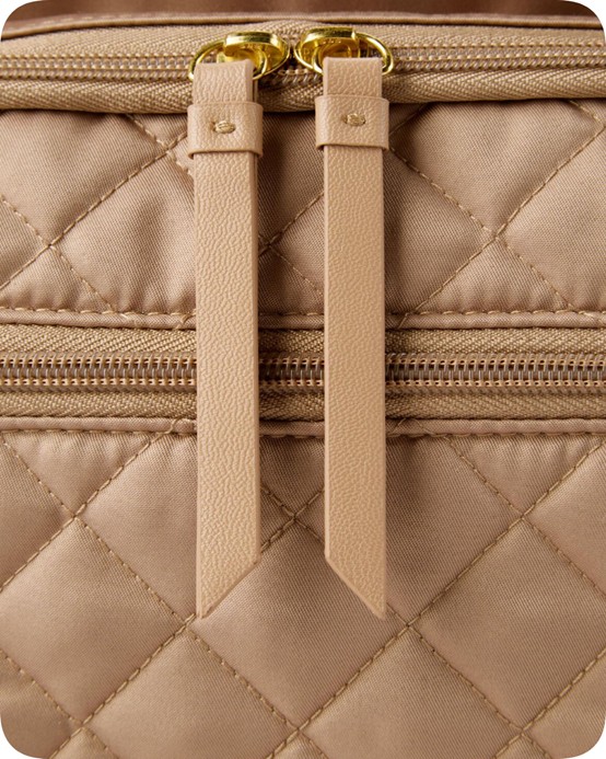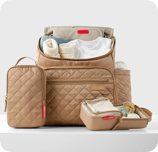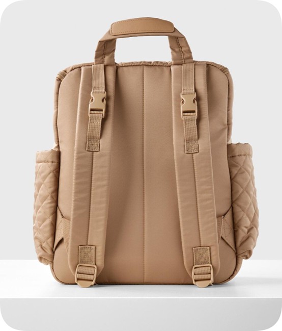 Our lightweight, quilted diaper backpack offers hands-free ease and special packing cubes for baby’s gear. The spacious interior fits everything from snacks to spare outfits and the extra wide opening makes it easy to pack and grab essentials in a pinch.