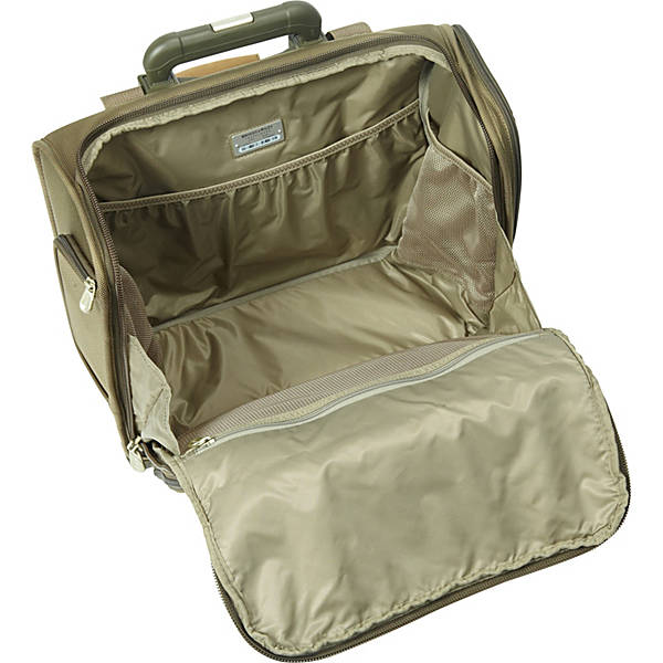 Pack your essentials for an overnight trip or in-flight travel inside this luxurious cabin bag from Briggs & Riley. The Briggs & Riley Baseline Rolling Cabin Bag is constructed from moisture and dirt resistant ballistic nylon fabric with durable self-repairing YKK zippers and features an aircraft grade aluminum telescoping handle system and smooth rolling wheels for easy mobility. This cabin bag has a roomy main compartment with a large U-shaped opening and a fully lined, gusseted interior with three mesh pockets and a padded pocket for your iPad or tablet. Exterior zipper pockets and a side water bottle pocket offer easy access to items that you need to access quickly when you're on the go.