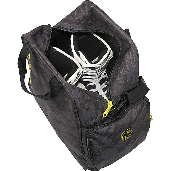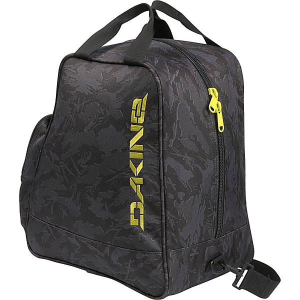 Head to the mountain with your ski boots or snowboard boots packed in this cool, convenient boot bag. The DAKINE Boot Bag is designed to fit footwear for your favorite snow sports and can be paired with a matching gear bag for your board or skis. This boot bag is available in solid colors and bold fashion prints and has the vertical DAKINE logo on the front. There is a dual zipper top opening into the boot compartment as well as a zippered side pocket for accessories, gloves, or small personal items. Carry this bag by the dual top handles or use the adjustable strap for comfortable shoulder carrying.
