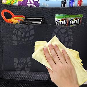 The car backseat organizer is made of high-quality 600D Polyester materials, and the seatback protector is made of strong polyester to protect the seat from scratches, wear, dirt, and abrasion. It’s Easier to clean off those dirty scuff marks from your Kick Mat.
