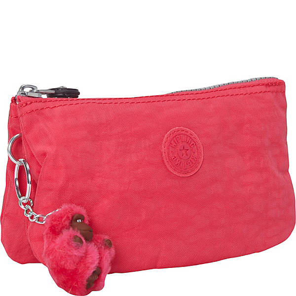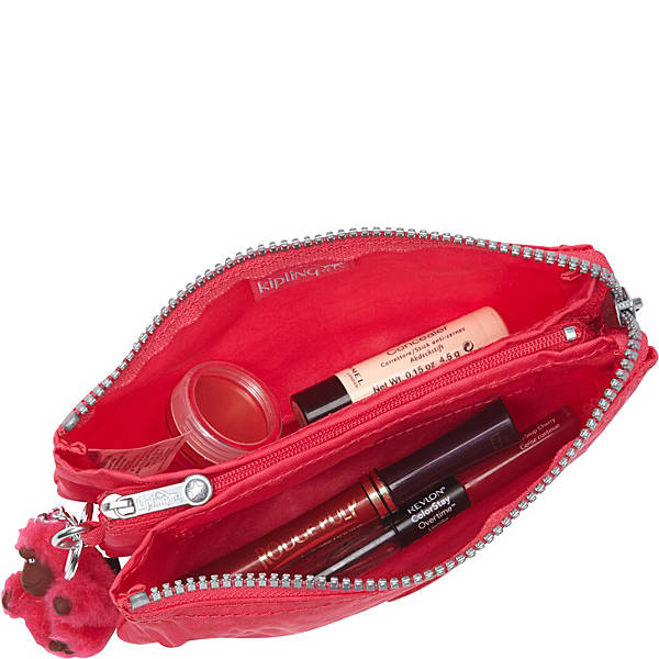 Keep your cosmetics neatly organized in the Kipling Creativity Cosmetic Bag – Small. This lightweight, water-resistant coated crinkle nylon kit has a zip-top closure and opens to reveal a spacious main compartment with two pockets on either side of a center zippered pocket. An interior zippered pocket holds jewelry or messy items. Separate and store your foundation and powder, blush, eye shadows, eyeliner and mascara, and lip pencils and lipsticks stylishly and efficiently at home or on the go in the Kipling Creativity Cosmetic Bag – Small. It has the signature Kipling logo on its front and comes with a matching monkey key hanger!