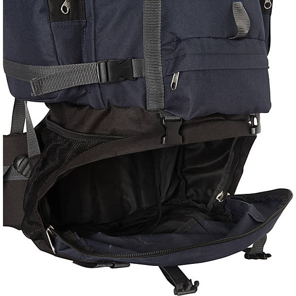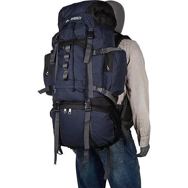 Head out for your next rugged expedition with all of your gear packed inside this sporty backpack from Everest. The Everest Deluxe Hiking Pack is made from durable polyester fabric and features a large shape with an external metal frame, multiple pockets for storage and organization, and a heavily padded waist belt and back panel that makes it comfortable to carry even when loaded with heavy gear. This backpack includes a top loading main compartment, a front loading bottom compartment, and several exterior zipper pockets. Other features of this backpack include compression straps and a front bungee organizer system for added storage.