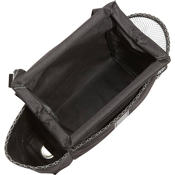 Organize dog toys, collapsible water bowls, leashes, and other small accessories inside this doggie car organizer from High Road. The High Road Doggie Organizer is made from durable packcloth material and features an innovative design with roomy pockets and a simple shape that can be hung over the headrest post of any car or truck. This car organizer has a large main compartment that can hold 24 cups of dry dog food and includes a front pocket to hold a leash, a water bowl, or dog toys, a mesh pocket for a water bottle, and a side pocket with a poo bag dispenser.