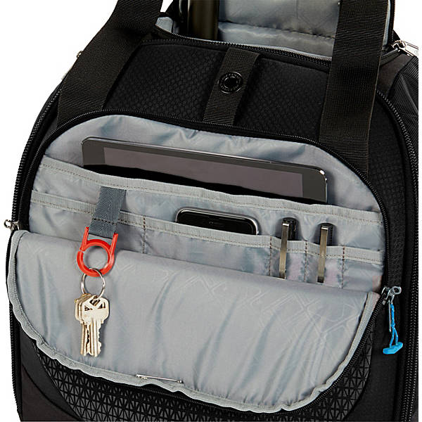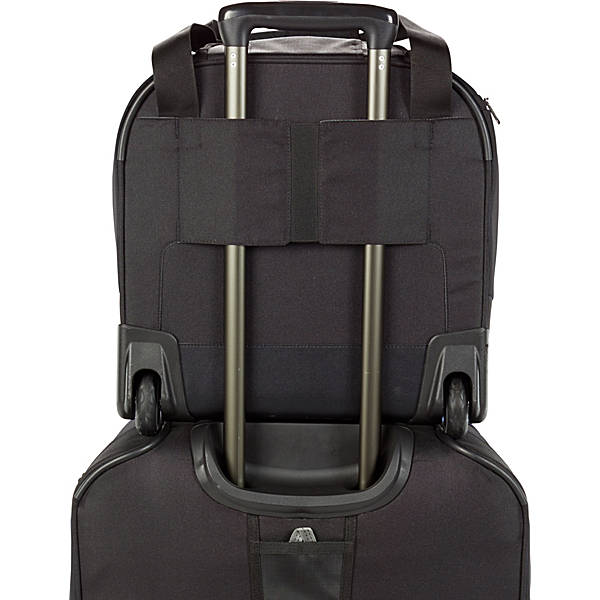 The Expanse? Wheeled Tote Carry-On is a great substitute for a backpack as your small carry-on. It features an elasticized back slip panel for securely stacking on wheeled luggage, padded tablet sleeve, front pocket with organization tools and pockets, and a padded tote handle.