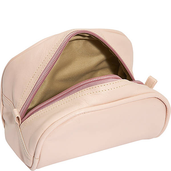 Organize cosmetics or other small items inside your handbag or travel bag with this soft little leather case from Piel. The Piel Cosmetic Bag is made from soft naked leather and features a compact shape and a rounded design with contrast accent stitching and a zip around top closure. The interior is fully lined and can be used to hold your lipsticks, eye shadows, compacts, eye pencils, makeup brushes, concealers, and moisturizers or other small items such as cables, chargers, and earbuds for use with your portable tech gadgets. The compact shape makes it easy to stash inside any small or large handbag or overnight bag.