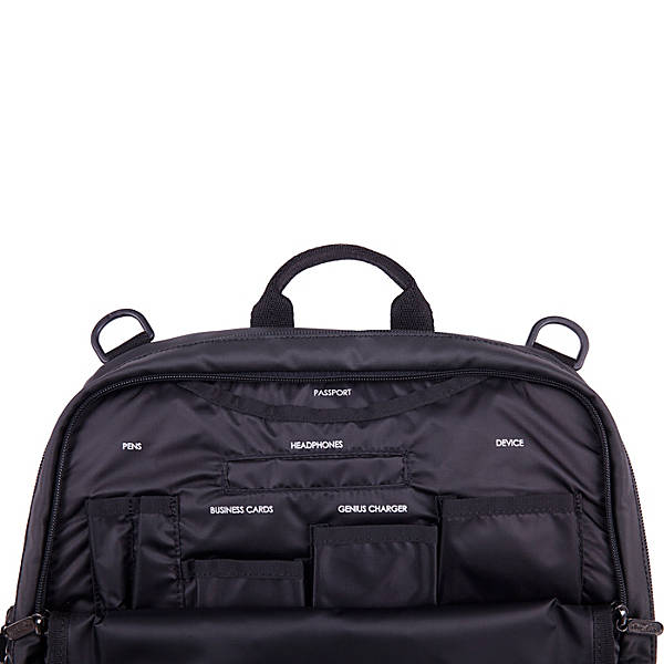 Pack your must haves for in-flight travel inside this stylish carry-on bag from Genius Pack. The Genius Pack High Altitude Flight Bag is made from polyester fabric and features a medium sized shape and a unique design with an innovative seat wrap that attaches to the seat in front of your or wraps around your handlebars during two-wheeled travel. This flight bag includes a pocket for your iPad or tablet, battery pack integration, headphone integration, and a zip front organizer panel with pen loops, a passport pocket, and slip pockets to hold your cell phone, mp3 player, and all sorts of small accessories.