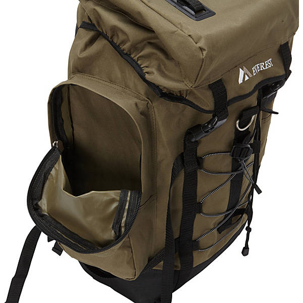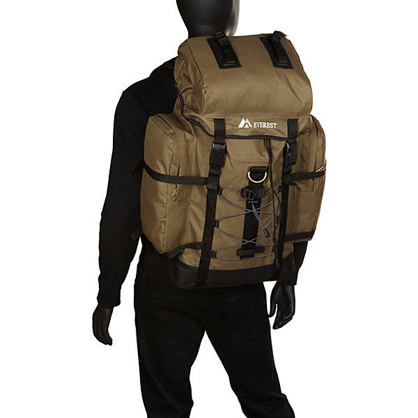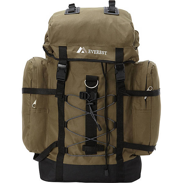 Embark on your next rugged adventure with all of your essentials packed inside this hiking backpack from Everest. The Everest Hiking Pack is made from durable polyester and features a large shape and a multi-compartment design with a snap buckle closure, a rugged bottom, and multiple pockets for organization. In addition to the top-loading main compartment, this pack includes zippered side pockets, a front bungee, and an attachment ring for accessories or gear pouches. Available in a variety of colors to suit your mood and style, this backpack is perfect for long hikes, camping trips, weekend getaways, and all sorts of outdoor excursions.