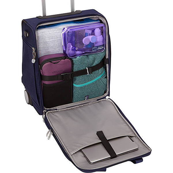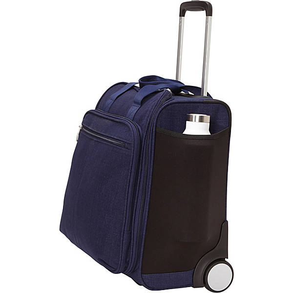 The Kalya Underseat Carry-on 2.0 with USB Port is a great choice for a carry-on bag that fits under many airline seats. Whether you wheel it behind you or tote it by hand, this travel case is perfect for all types of personal or professional travel. This bag features a durable and tasteful design with a multi-length telescoping pull handle, two top grab handles so you can hand-carry it on as your personal item, and smooth rolling wheels that make it easy to maneuver down the aisle. Side water bottle pockets and a front zipper pocket offer added storage for small items that you need to keep within easy reach while flying. under seat storage capacities and dimensions vary by airline – please check with your airline for more information.
