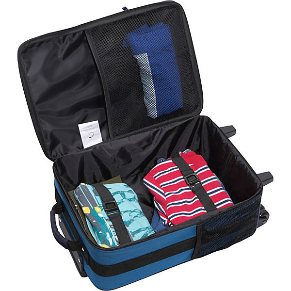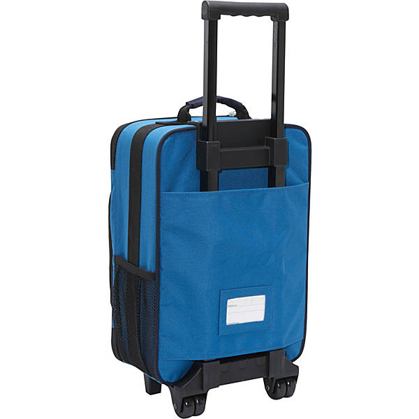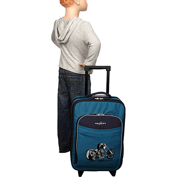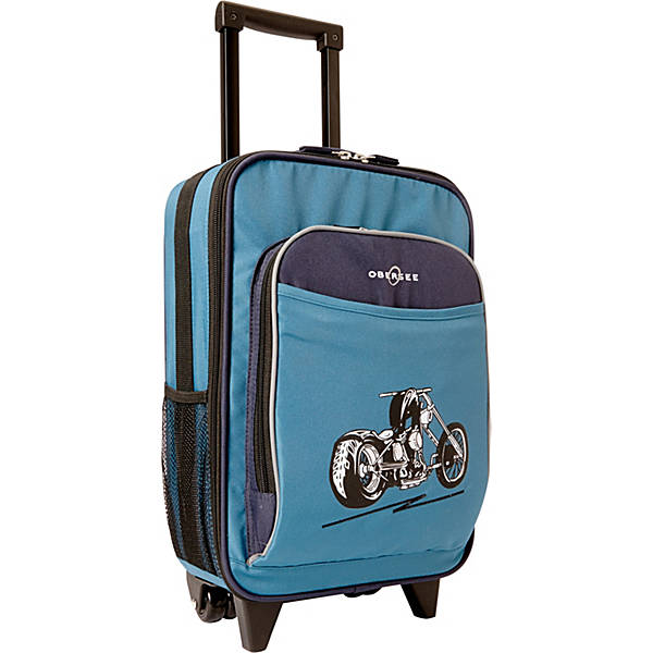 Kids can travel with ease with their clothing, accessories, beverages, and snacks all stored inside this hip roller bag from O3 USA. The O3 USA O3 Kids Motorcycle Luggage With Integrated Cooler is made from polyester fabric with a motorcycle graphic on the front and features a classic design with durable construction, a retractable top handle, and smooth rolling wheels that make it easy for kids to maneuver. This rolling bag has a roomy main compartment with tie-down straps to hold clothing in place, a mesh lid pocket to hold accessories, two side beverage pockets, and an insulated zip front cooler pocket to hold snacks.