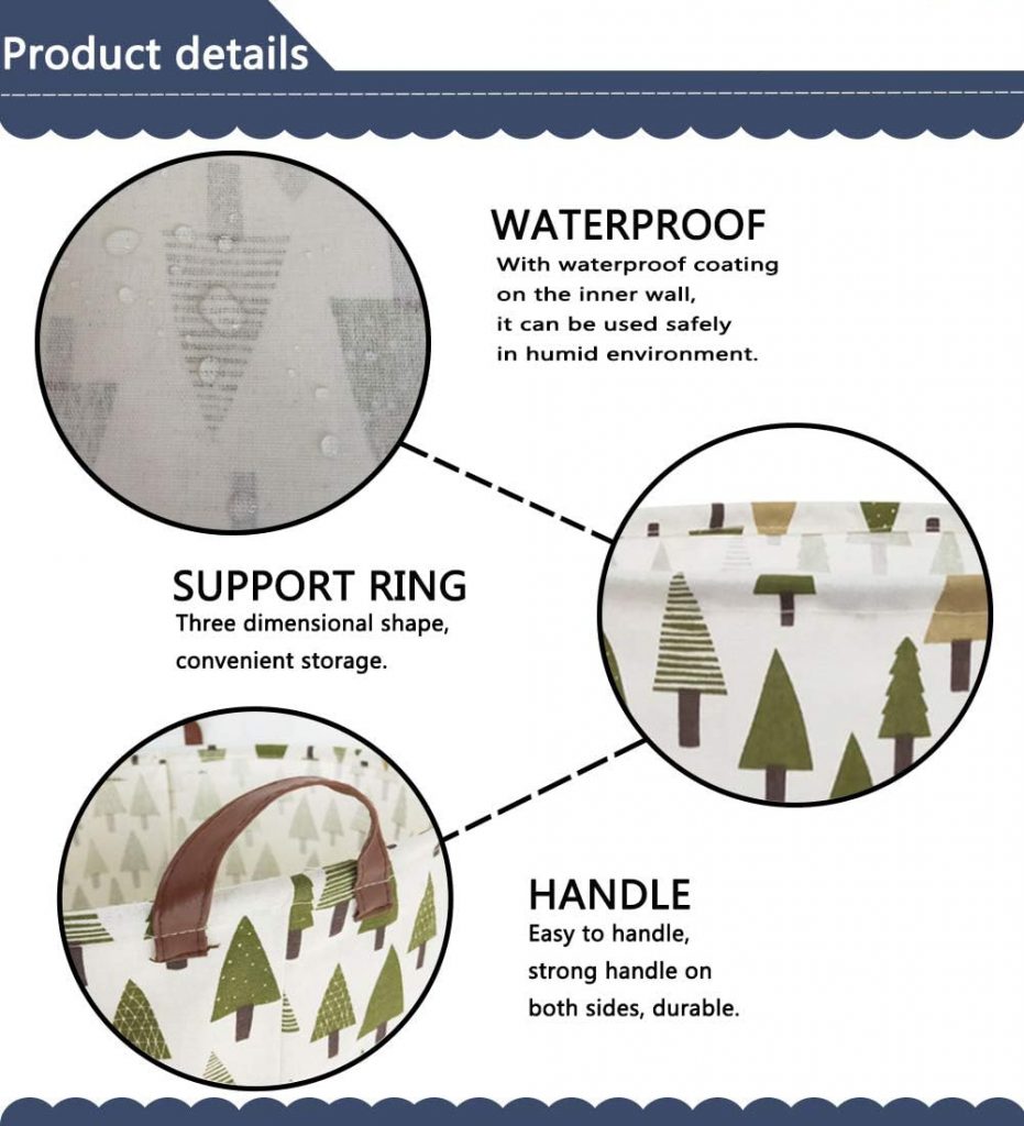 【FEATURE】:1.The laundry basket has a large capacity and can store the whole family’s clothes. 2.Laundry basket with two handles, easy to move. 3.collapsible design,you can fold it up when you don’t need it,easy to store and save space. 4.The pattern of clothes hamper is fashionable and stylish, It will be great gift for family and a good helper for housewives.