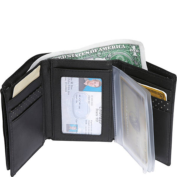 Protect your identity and sensitive financial information with this sleek RFID blocking wallet from Buxton. The Buxton Luciano ID Three-Fold – RFID wallet is made from genuine leather and features a stylish European racing stripe design and multiple interior pockets to hold all of your most important cards, cash, and ID. This wallet includes multiple RFID blocking card slots to hold your credit cards and bank cards, a clear ID window in the center to hold your driver's license or photo ID, and a removable card case that makes it easy to show identification when you're on the go. This wallet includes a full length bill compartment to hold cash, important papers, or receipts.