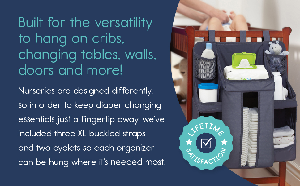 QUICKLY ATTACHES TO CHANGING TABLES, CRIBS OR WALLS – featuring 3 XL buckle straps, the acbags.com organizer provides unmatched versatility for any nursery.