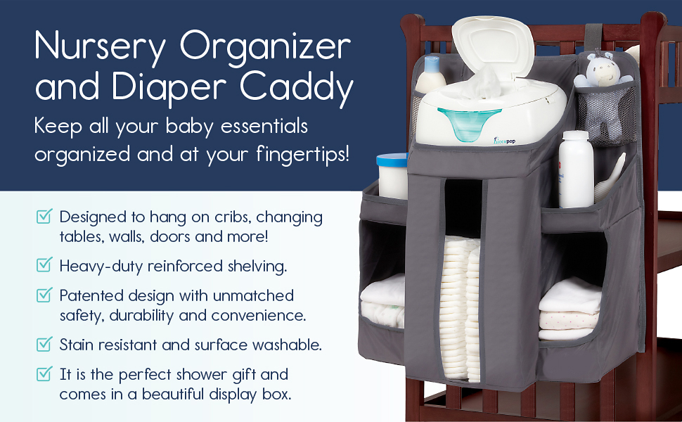 Nursery Organizer and Baby Diaper Caddy | Hanging Diaper Organization Storage for Baby Essentials | Hang on Crib, Changing Table or Wall