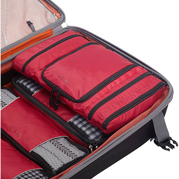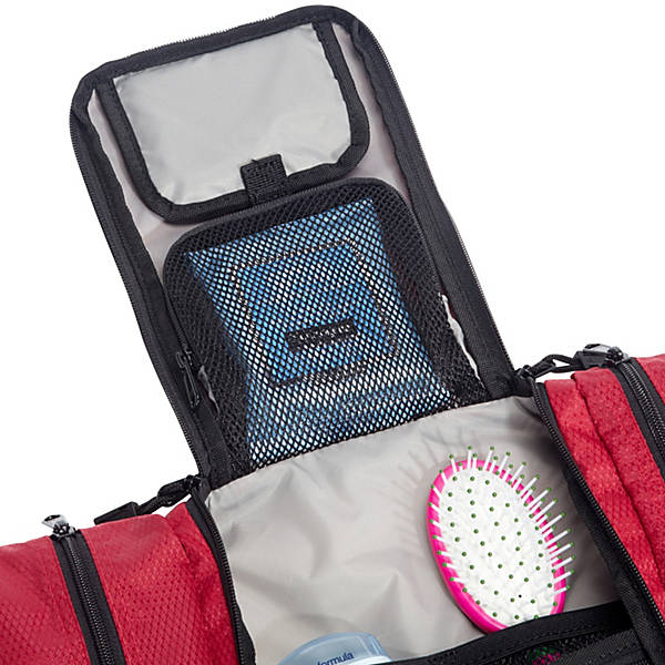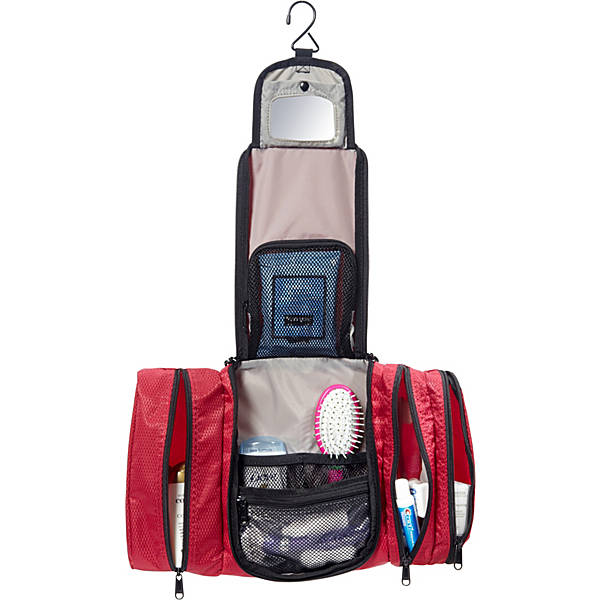 Pack smarter with this FLAT toiletry kit. At only 2.25 in thick, you'll be amazed how much you can pack into it! Four compartments keep your essentials organized – no more digging into the bottom to find your razor or floss.