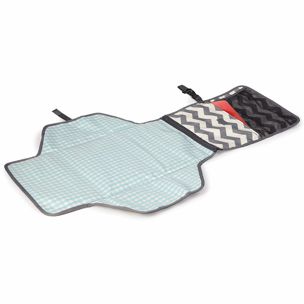 • Extra-wide wipe-clean travel changing mat, Changing pad (inches): 23.5l x 21.75w, Closed (inches): 11.75l x 4w x 8.25h