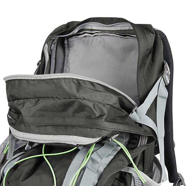 The Ecogear Snow Leopard 40L hiking pack is a fully functional daypack equipped with: a main compartment that provides a hydration sleeve and reservoir clip for a hydration bladder (bladder not included), an awesome air flow vent system on the back to keep your back cool and to prevent excessive sweating, adjustable shoulder straps and hip belt with high density foam, dual side mesh pockets for dr