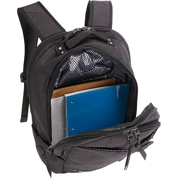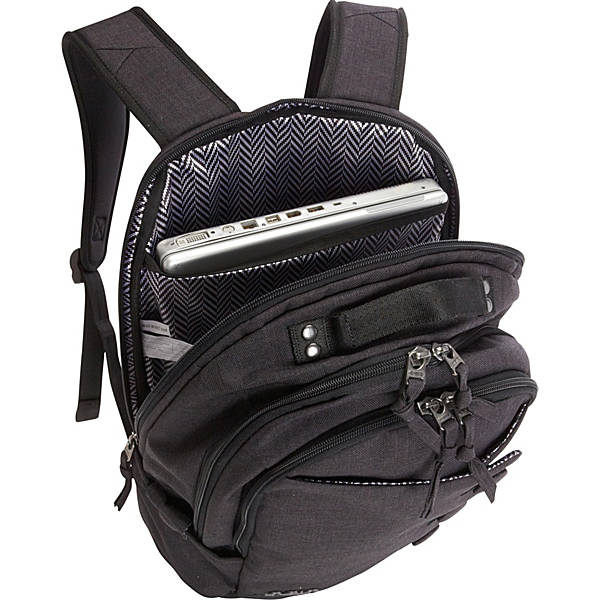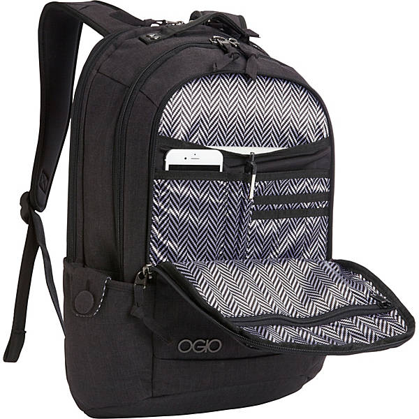 Head off to work or school with your personal items and portable electronic devices stored safely inside this cool backpack from OGIO. The OGIO Soho Pack features durable TC poly fabric with a padded laptop compartment, a padded pocket for your tablet or eReader, a large main compartment for books, binders, and folders, a pocket for laptop cords, and a file sleeve. This backpack has a large front organizer compartment with pockets for your cell phone, pens, flash drives, mints, keys, and other essentials and offers a front slip pocket as well as two fleece lined side stash pockets for small, frequently used items. A quilted back panel and fully adjustable shoulder straps make it comfortable for all day use.