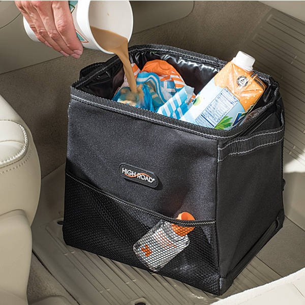 ¡¤ This car organizer holds up to 2.5 gallons of car trash in a tip-resistant car trash bin that's slim enough to fit a compact vehicle